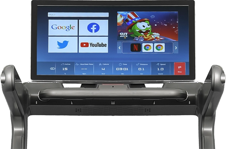 FLEX T PRO is a commercial-grade treadmill that comes with an innovative, spacious belt that maximizes grip and durability for safe and long-lasting performance. Designed for performance, comfort, and safety, it features a shock-absorbing deck to protect joints, a powerful 5.0 HP AC motor, and 15 auto incline levels for challenging workouts. Its 32" touchscreen console supports workout tracking, entertainment, and web access, while Bluetooth, WiFi, and wireless charging keep users connected. With reverse walking, user detection, and 36 built-in programs, it's the perfect blend of innovation and intensity.
