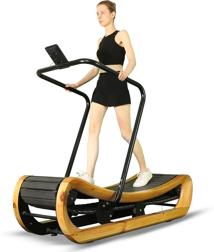 Turbuster 's TR 2000 Wooden Curve Treadmill builds on the tradition of research, safety, ease of use & dependability. American design is committed to creating a workout experience unlike any other. This wooden curve treadmill is designed for walkers and joggers who are looking to build endurance and increase stamina. Train comfortably and for a longer time period while reinforcing proper gait mechanics and posture.