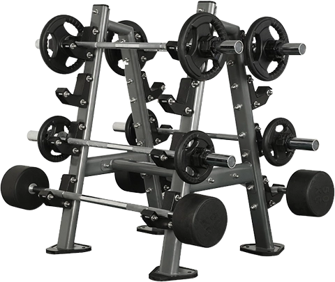 Turbuster FW 905 Barbell Rack provides a stylish, space-saving storage solution for up to 8 barbells. The frame features a powder finish for long-lasting durability. High-impact, segmented wear guards help protect the rack and bars and allow for easy replacement.