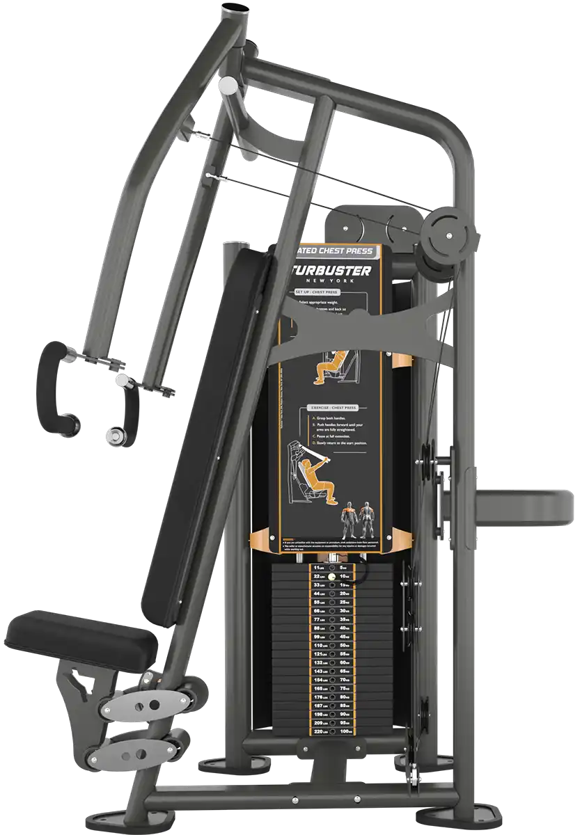 Turbuster's E Series Chest Press features proper bio mechanics,ergonomic structure & a bold design.It promotes more muscle recruitment and exercise variety while training the muscles involved in the upper body pushing movements, including the pectoral muscles and triceps.
