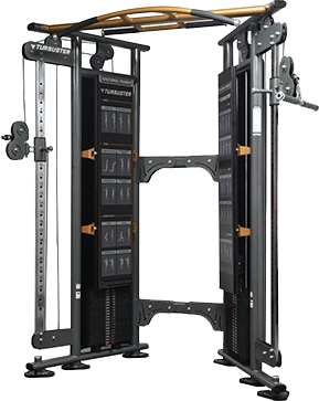 Turbuster's Functional Trainer comes with 18 height adjusting options that offer more workout positions and versatility than any other functional trainer. This machine has rust free stainless steel guide rods that initiate smooth movement. It also comes with integrated pull up bars which makes this trainer more versatile.Commercial grade quality with latest design for stability & durability.