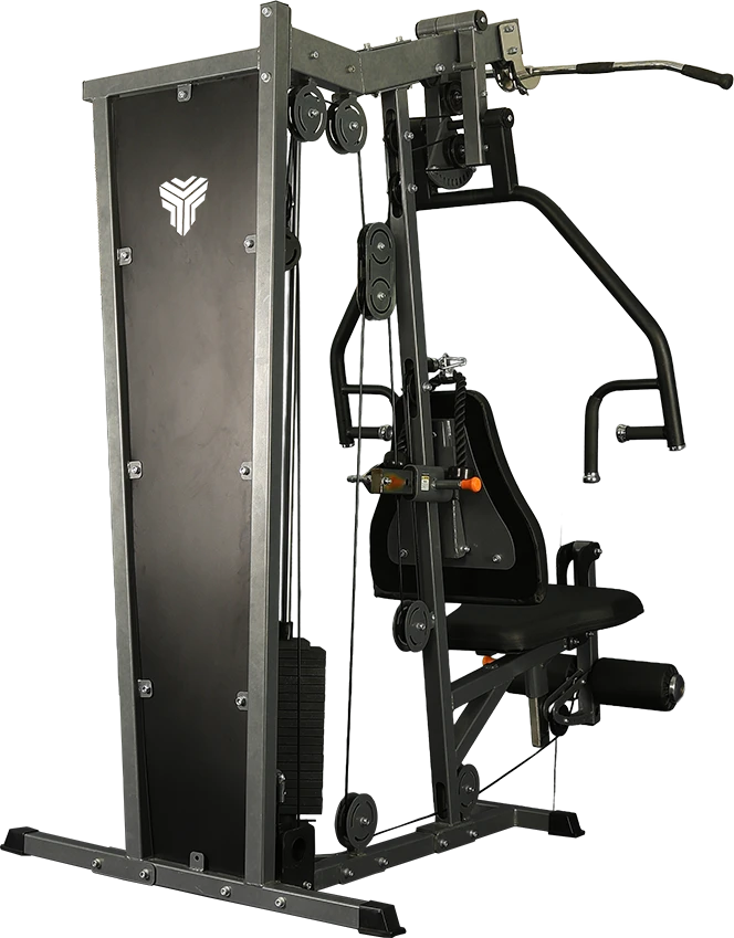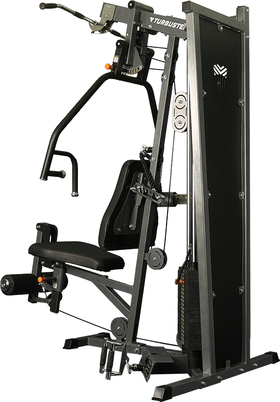 Turbuster Fitness TR 200 multi gym is highly space efficient design while providing a variety of exercises on one unit for multiple users. The weight stack can be fitted on the left or right side of the machine to accommodate different spaces. Easy, one step adjustments on the seat bottom and back accommodate people of all sizes. Biomechanics are essential conditions for safety and success in strength training. Sticker with suggested easy to follow exercises. Over 30 strength exercises. Our products are highly durable, and a long lasting investment for your facility